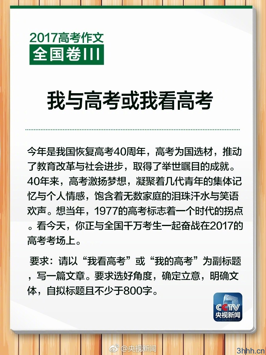 【高考作文:2017年全国甲卷(II)高考作文题目出炉!】